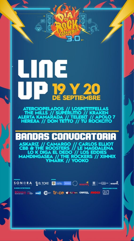 Después de lanzar su Line Up el pasado 3 de agosto y de un proceso evaluativo y curatorial para el cual se presentaron: 275 bandas directamente y en la alianza con el BoMM en la categoría Rock y sus vertientes 260 bandas, Día de Rock Colombia 3.0 anuncia no 10 como tenía publicado sino 40 bandas que harán parte de su circuito y festival.