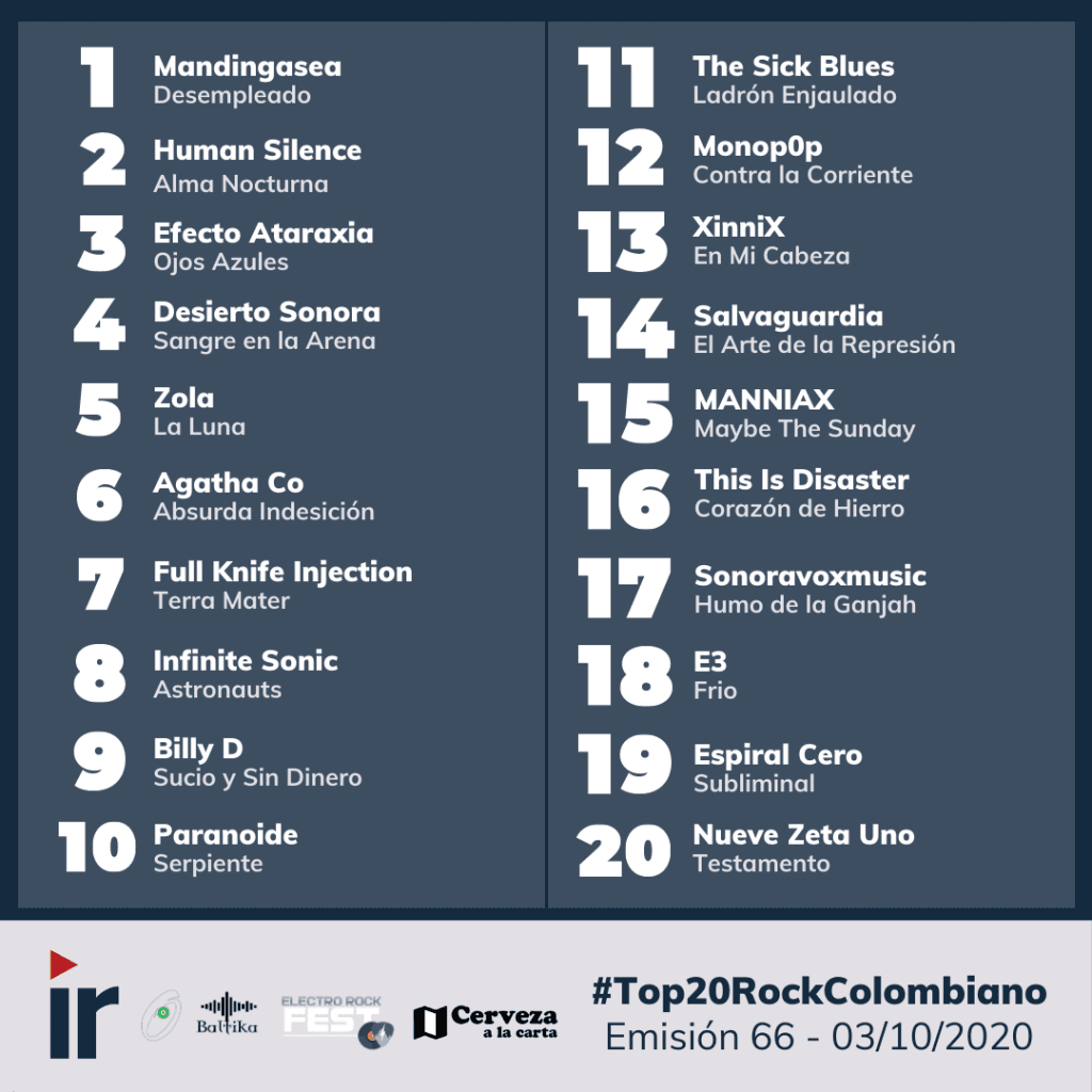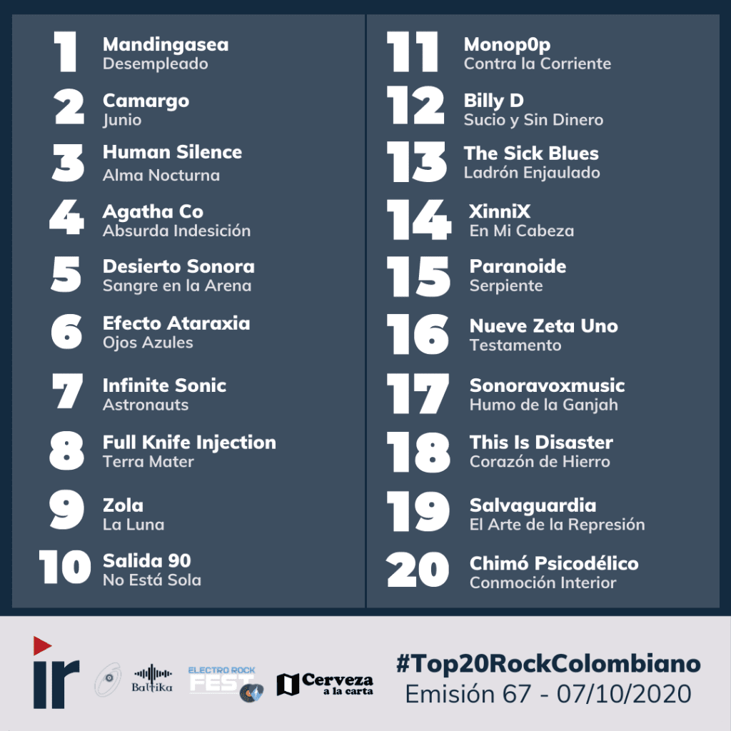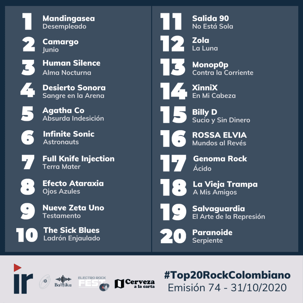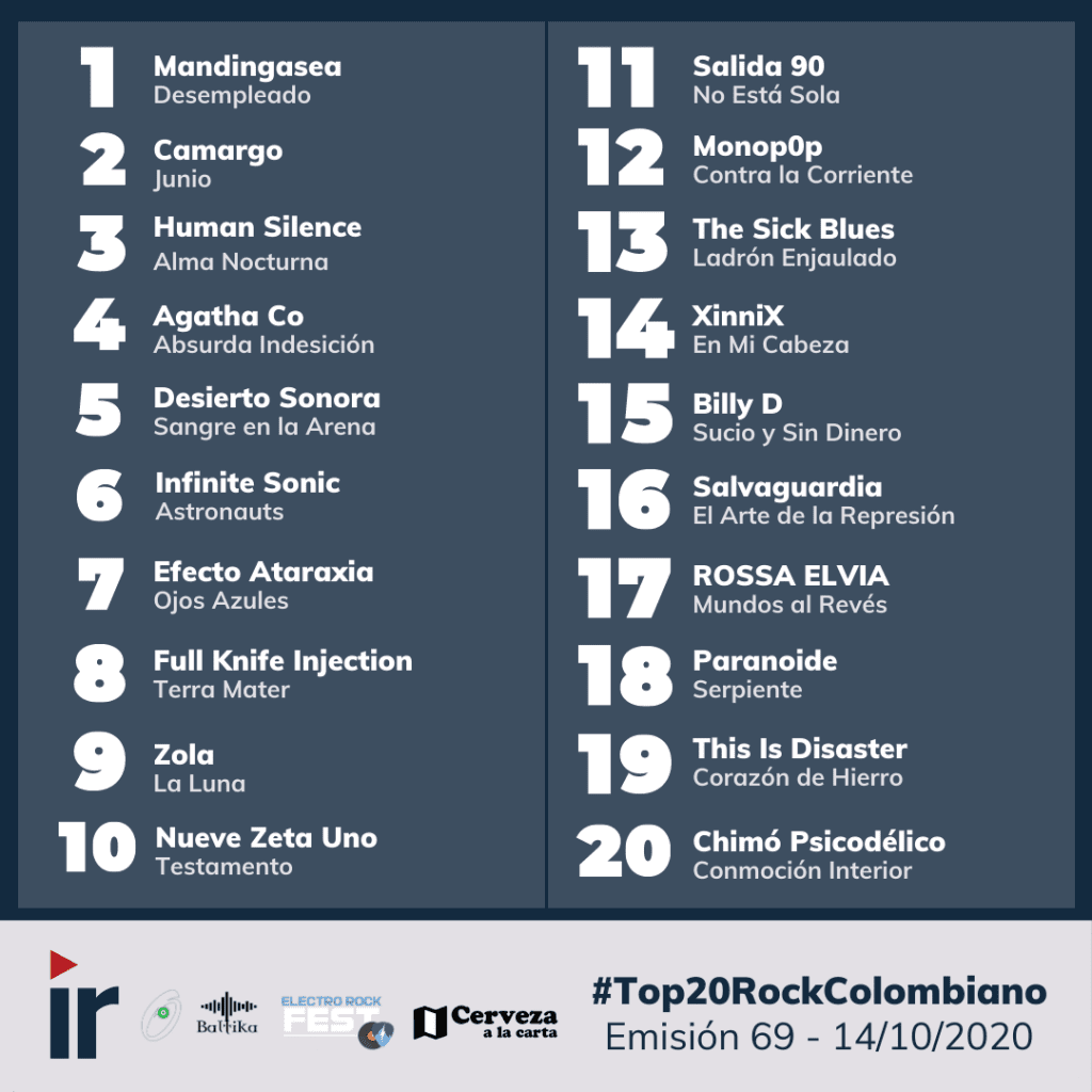 Emisiones de Octubre en el Top 20 Rock Colombiano