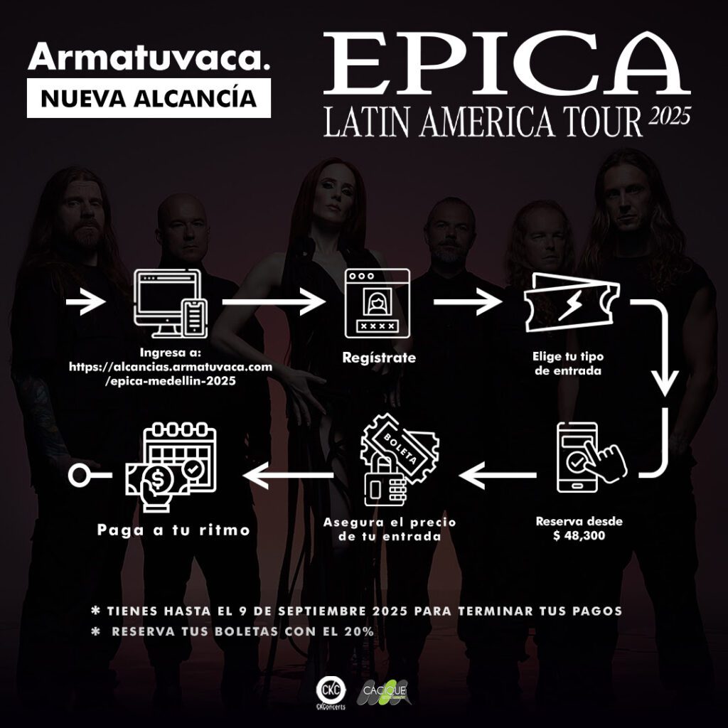 ¡No te pierdas la oportunidad de vivir la experiencia épica de Epica en Medellín! Las entradas ya están disponibles, así que asegura la tuya y acompáñanos en una noche inolvidable llena de metal sinfónico de clase mundial.