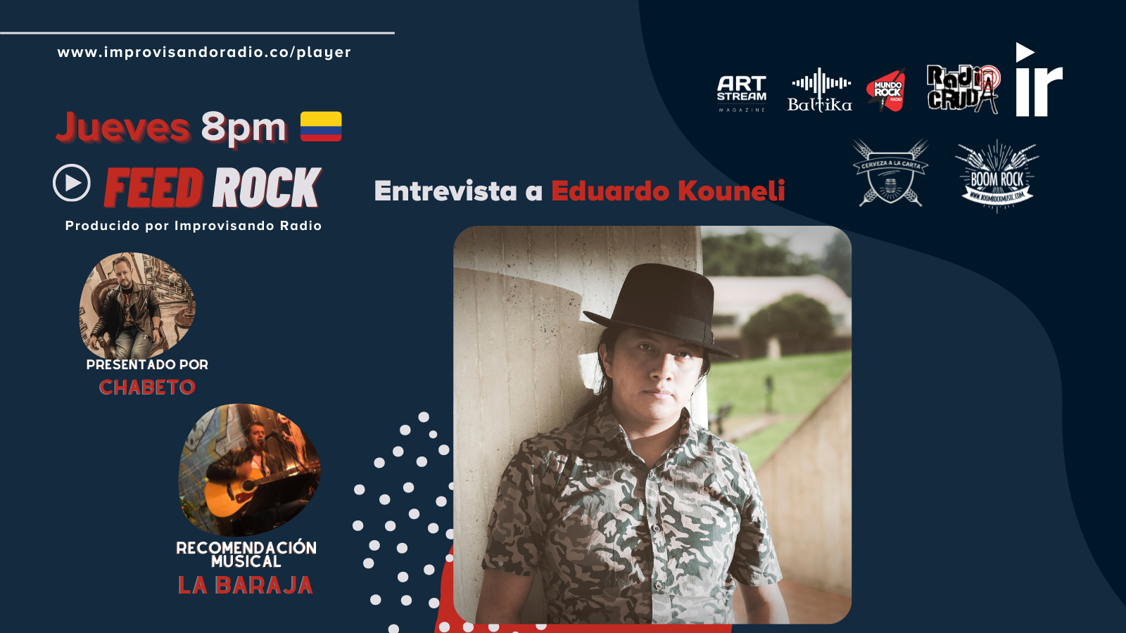 En este episodio de Feed Rock, hablamos con una propuesta musical llena de mezclas traída en alianza con Logos Media: Eduardo Kouneli. Estuvimos hablamos sobre su trayectoria, canciones y muchas cosas más. Además con un recomendado musical desde Argentina por BOOM ROCK medio aliado, con la banda colombiana: La Baraja, una excelente propuesta musical llena de buenas cosas.