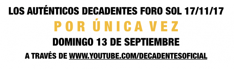 LOS AUTENTICOS DECADENTES: EL 13 DE SEPTIEMBRE EMITIRAN POR UNICA VEZ VIA YOUTUBE EL SHOW MÁS IMPORTANTE DE SU HISTORIA: FORO SOL CDMX 17/11/17