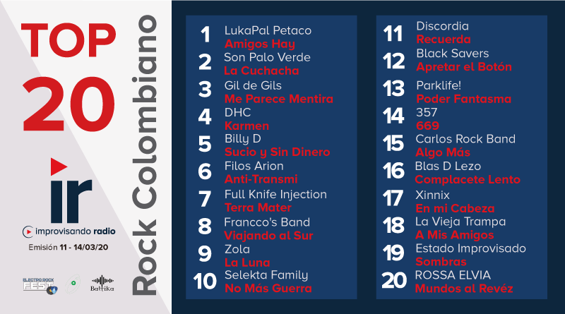 Esto fue lo que pasó el miércoles 11 y el sábado 14 de marzo del 2020 en el #Top20RockColombiano, con nuevas bandas que están peleando por el primer lugar.
