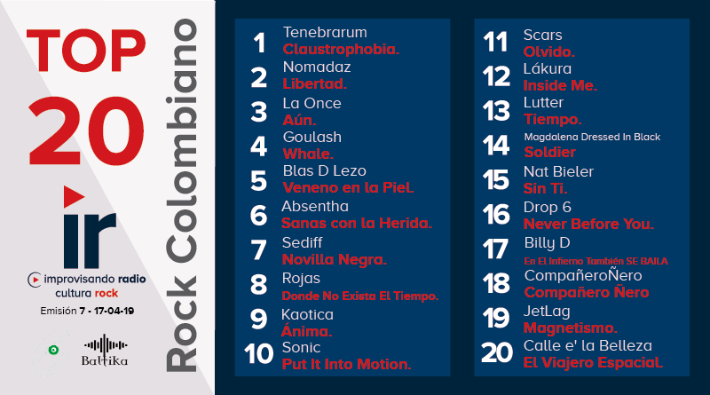 Top 20 Rock Colombiano – Emisión 7 – 2019