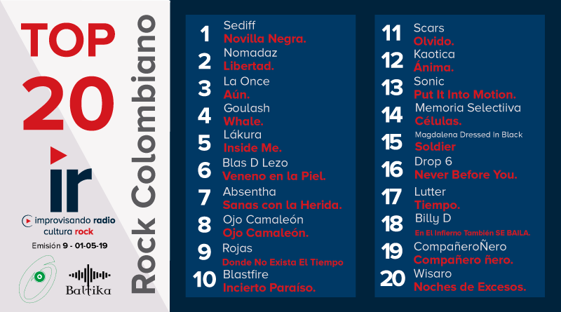 Esto fue lo que pasó el miércoles 1 de Mayo en el #Top20RockColombiano. Recordamos que este programa otorga un galardón oficial de Improvisando Radio y un bono de Baltika Records con un descuento para la grabación de un sencillo.