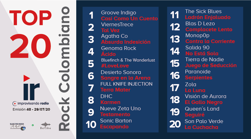 Esto fue lo que pasó el miércoles 22 y 29 y el sábado 25 de julio del 2020 en el #Top20RockColombiano.